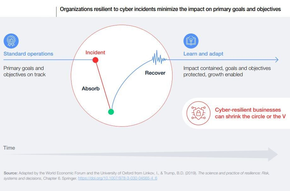 Estabelecer uma forte cultura de resiliência cibernética nas organizações e nos ecossistemas passa por ligar os riscos cibernéticos aos riscos intrínsecos. Investir na resiliência cibernética reduz os custos económicos dos incidentes cibernéticos, ao mesmo tempo que contribui para a melhoria da reputação de uma organização.