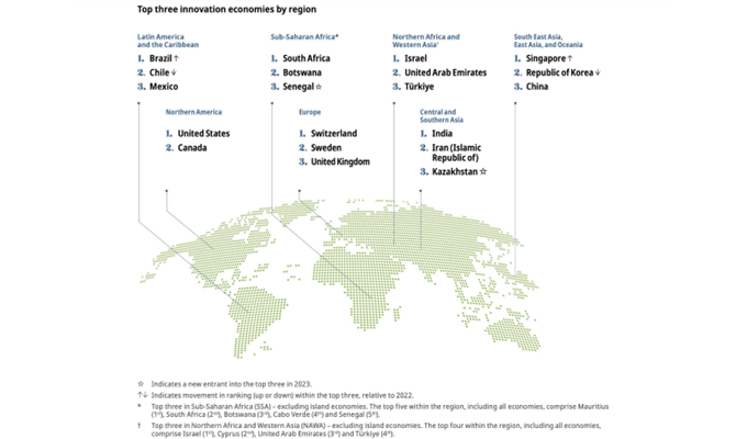 As 15 primeiras classificações no Índice Global de Inovação 2023 da Organização Mundial da Propriedade Intelectual (OMPI) contam apenas parte da história. Ao olharmos para os principais inovadores em todas as regiões, constatamos que países como a Turquia, o Senegal e o Cazaquistão se juntaram às fileiras das nações que lideram o caminho.