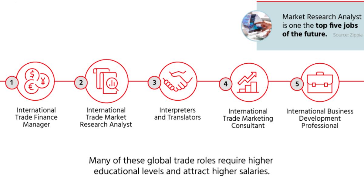O crescimento do comércio global está a levar à redistribuição geográfica da força de trabalho. E a posição mais procurada nesta área é a de diretor financeiro de comércio internacional (negoceia entre as partes, obtém financiamento da banca e, em negócios complexos, cria estruturas para integrar produtos), de acordo com a The Hinrich Foundation.
