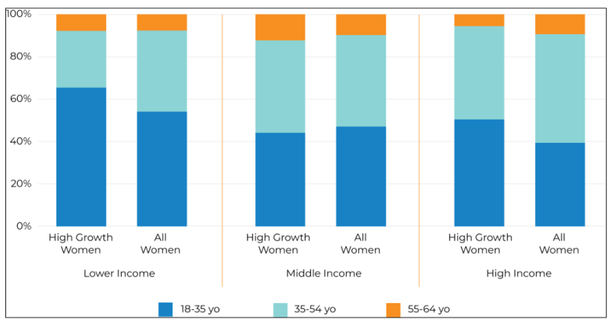 Sim, existe. E está a aumentar. Globalmente, uma em cada quatro empreendedoras espera registar crescimento no espaço de cinco anos, empregando seis ou mais pessoas. Esta proporção sobe nos países de baixo rendimento (uma em cada três) e na América do Norte (duas em cada cinco).