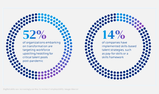 Na fase pós-pandemia 52% das organizações que apostam na transformação investem em qualificar e requalificar o seu talento; e 14% implementaram estratégias ...