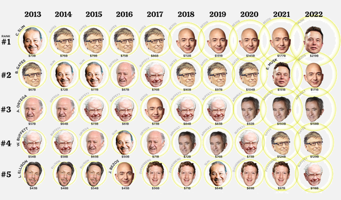 A lista dos bilionários mais ricos do mundo passou por uma série de mudanças na última década. Há caras novas no topo da tabela, mas uma das mudanças ...